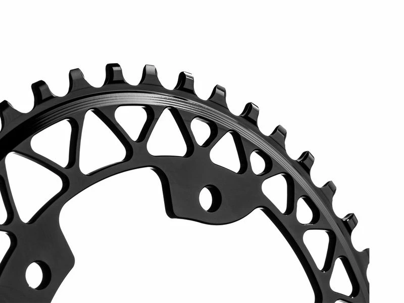 Partant du constat que la force de pédalage n’est pas la même en fonction de la position des manivelles, Absolute Black a développé des plateaux ovales qui permettent de diminuer la force nécessaire au pédalage lorsque normalement elle est la plus élevée, et de l’augmenter lorsque normalement elle est plus faible. Le ressenti est donc une impression de pédalage plus “rond”, et plus régulier.
