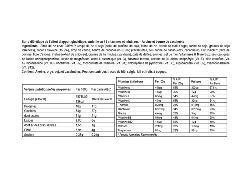 Information complémentaire sur les allergies : Contient de l’avoine, de l’orge du soja, de la cacahuète. Peut contenir des traces de blés, de seigle, de lait et de fruits à coque
