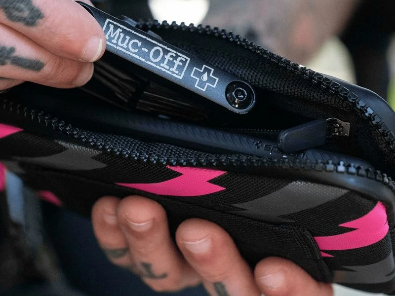 Vous cherchez une sacoche rigide pour votre smartphone, vos outils indispensables et/ou votre kit de réparation de crevaison ? Muc-Off a élaboré l’Essential Case : une solution de rangement petit format, idéale pour tous les riders quelle que soit la pratique, du trail montagnard au tarmac du vélodrome urbain et tout ce qui se trouve entre les deux… La construction externe solide associée au zip déperlant offrent la protection nécessaire à vos accessoires de ride indispensables, un long lacet recouvert de caoutchouc permet d’ouvrir et d’accéder facilement à l’intérieur même sur le vélo. Le système d’attache de type Molle au dos de la sacoche est compatible avec tout autre type d’accessoire ou sac pourvu de ce système. À l’intérieur, un compartiment permet de séparer cartes et téléphone, ou votre chambre à air de vos outils, vos recharges et vos démonte-pneus. Le Essentials Case de Muc-Off possède une petite poche interne fermée pour garder vos clés ou votre monnaie en lieu sûr. Il est ajusté pour accueillir les plus gros smartphones sans prendre beaucoup de place dans votre poche arrière