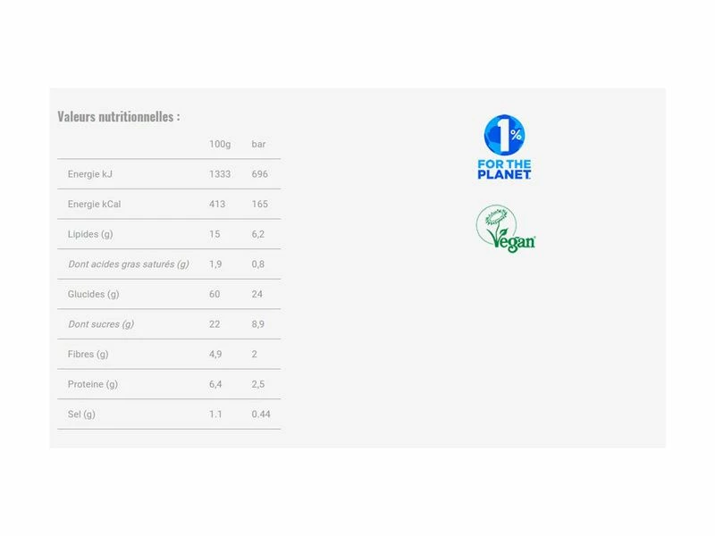 - Cette barre de 40g fabriquée à base d’ingrédients naturels peut contenir des petits morceaux de coquilles ou d’écorces.